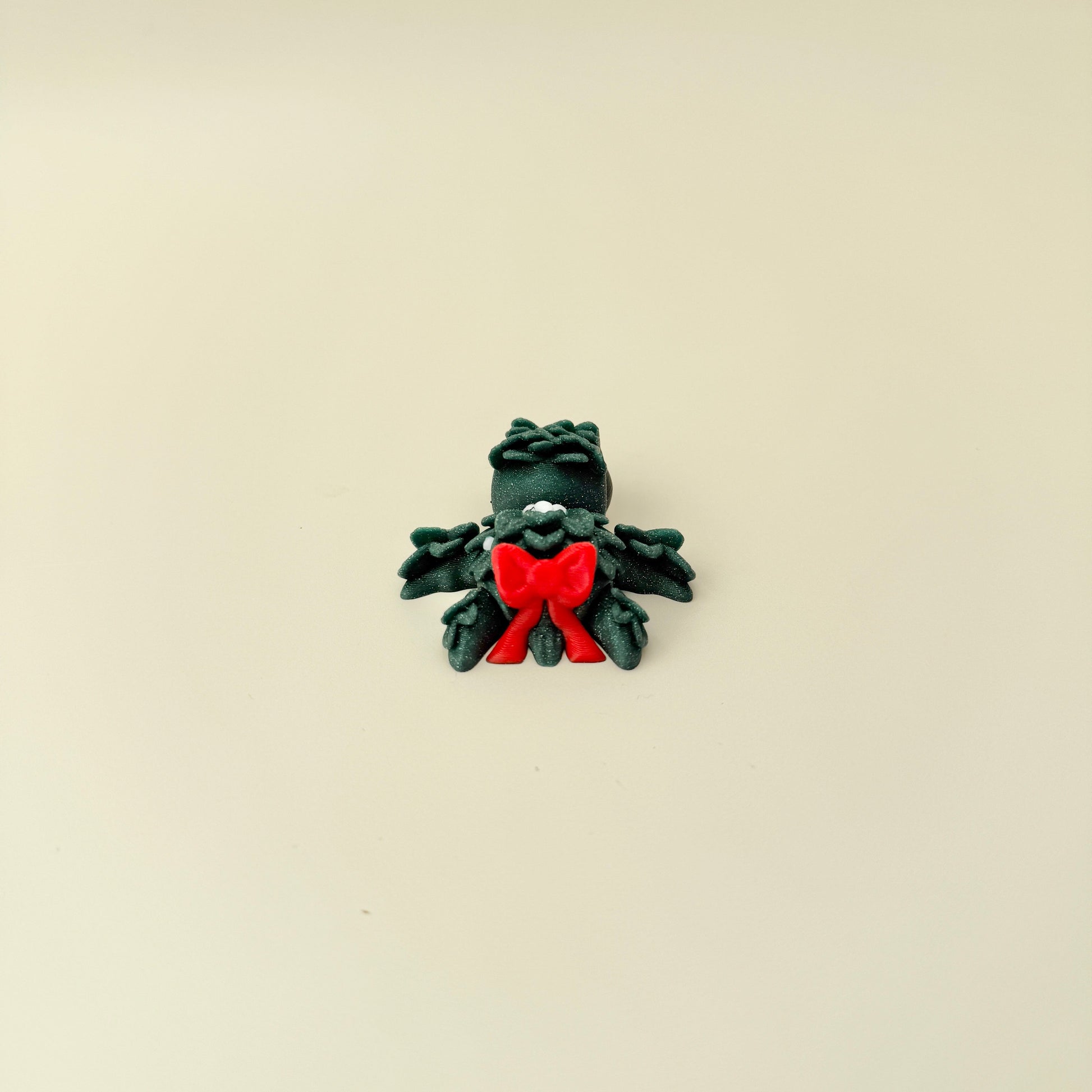 Festive, tiny, and unbelievably cute. Our Baby Mistletoe Turtle is a 5 cm desk buddy finished in deep evergreen glitter with snowy white berry dots and a bright red bow. The layered “leaf” texture feels great to trace with your thumb, making it a lovely little tactile pal for quiet focus breaks and the sweetest stocking filler.