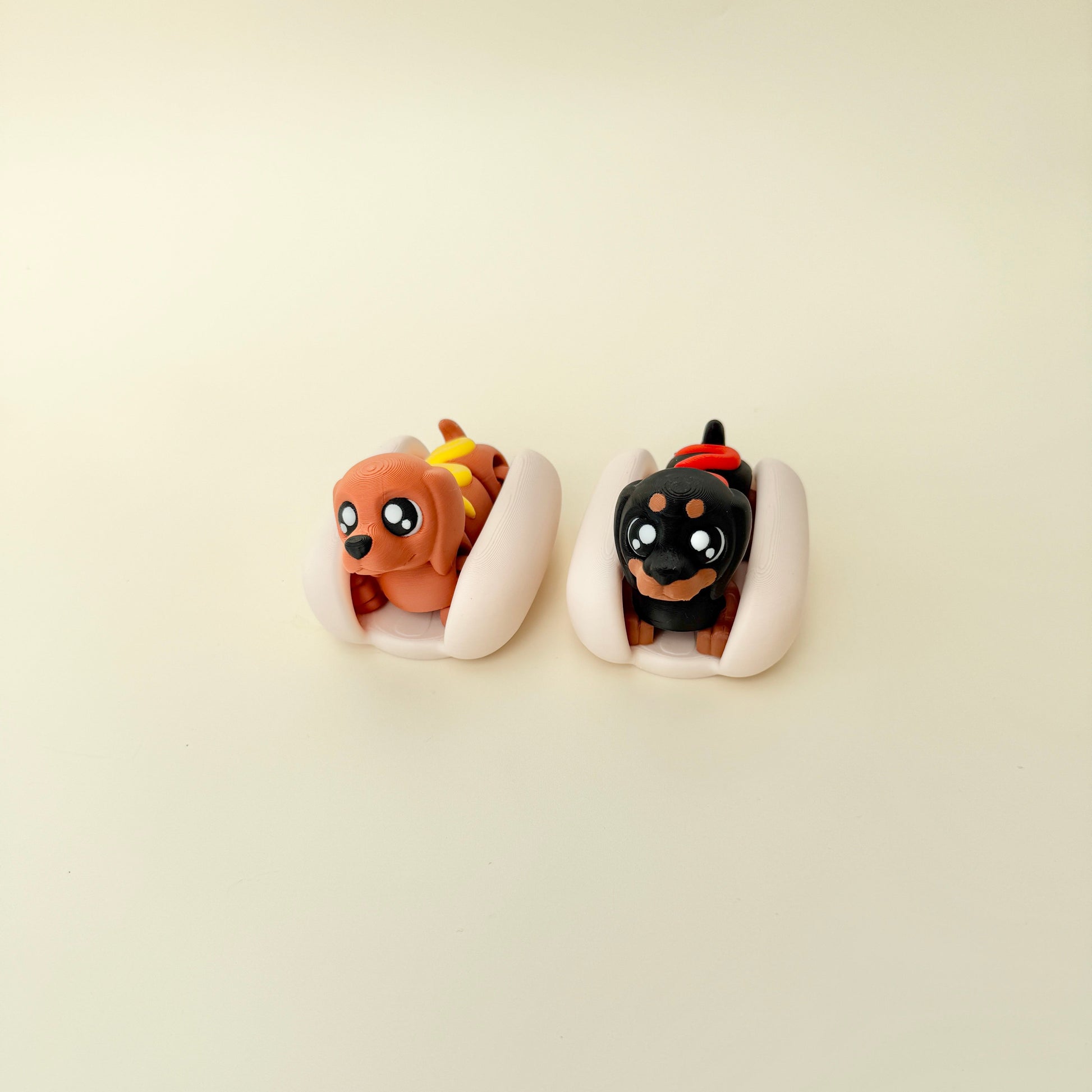 Zero calories, 100% fidget. Meet the Hot Doggo: a tiny articulated dachshund that lounges in its soft-look bun, then hops out for a wiggle whenever your hands need something to do.