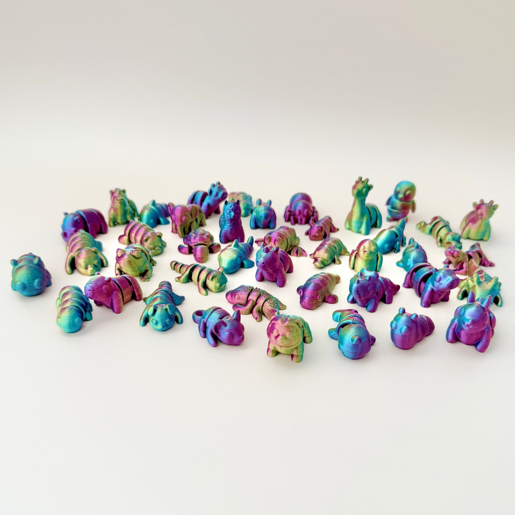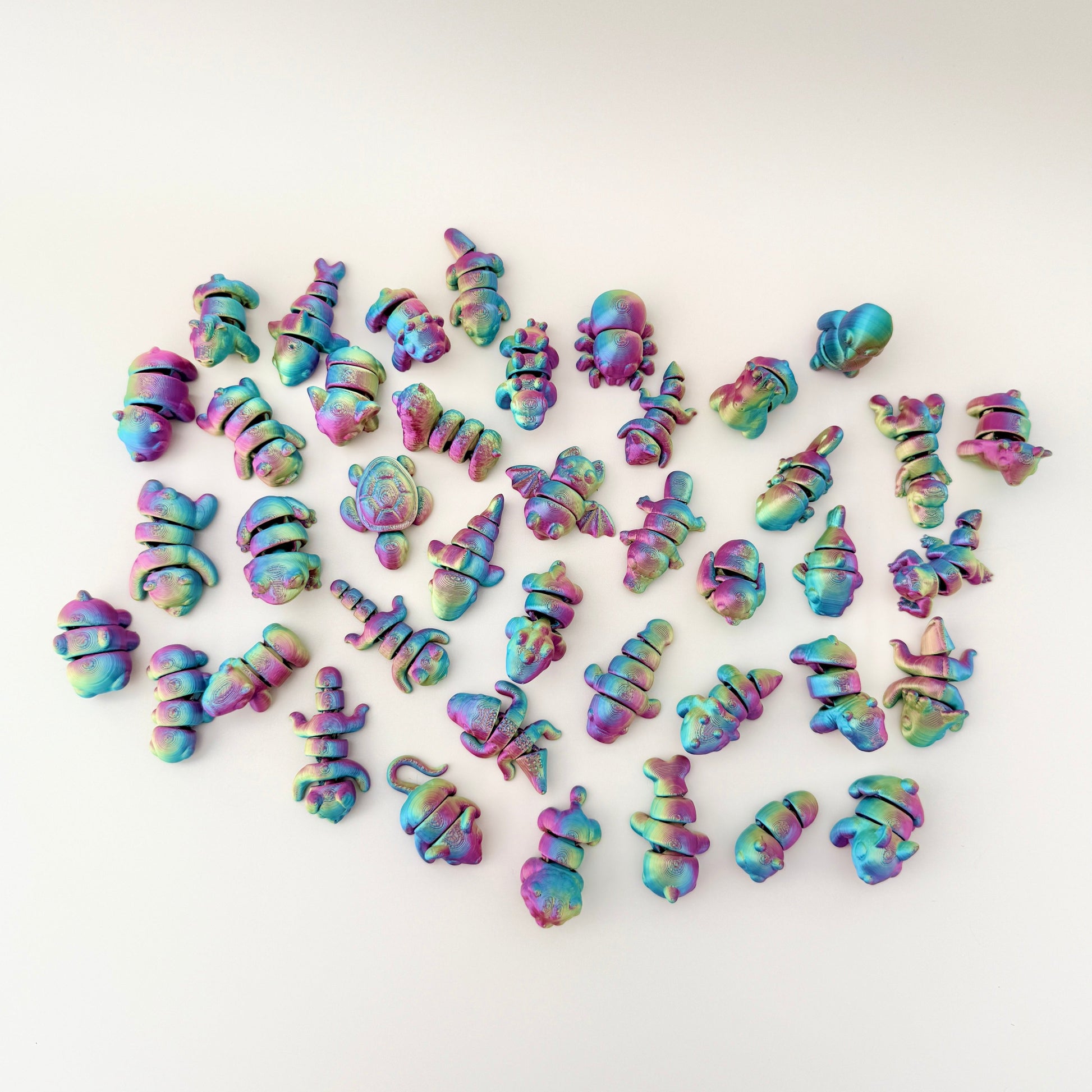 Introducing the Mystic Mini Pets, a mesmerising twist on our beloved mini fidgets! These 3D-printed pets are crafted with a unique colour-changing filament in shades of red, blue, and gold. Watch as they shift and sparkle in the light, creating a magical effect that changes as you move them. Perfect for fidget fans and collectors alike, these mini pets bring a touch of enchantment to your sensory play. Designed by Zou3D.